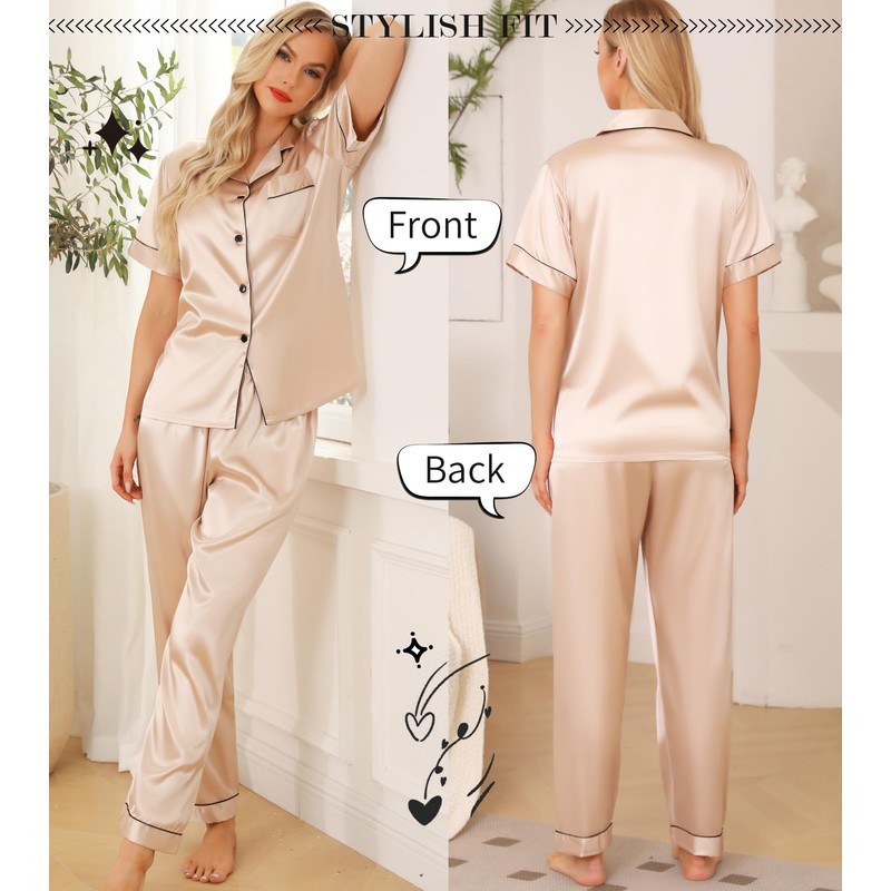 - 【OCCASIONS】This women's silk pajama set offers both comfort and versatility. It's not only ideal for casual wear, sleeping, and lounging at home, but also perfect for special events like Valentine's Day, birthdays, parties, weddings, travel, anniversaries, and other special occasions.