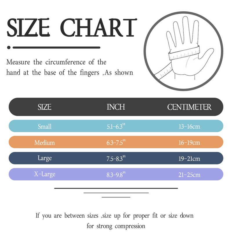 - [NOTE] –PLEASE CHECK THE SIZE CHART ON THE IMAGE AND MEASURE YOUR CIRCUMFERENCE ACCORDING TO THE INSTRUCTIONS TO GET THE RIGHT SIZE. Vlela Brand Store provides 60 days after-sales service for each pair of compression gloves. If you have any questions about the gloves, Please contact us ,We will provide you with satisfaction!