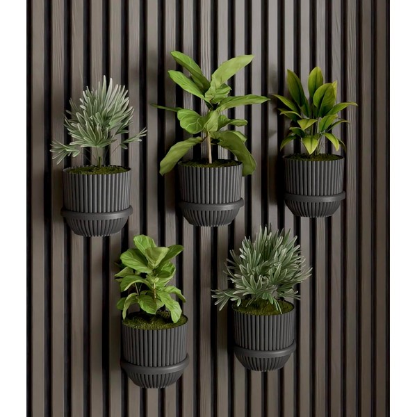 - Box contents for 2 plant rings, 2 x plant rings, 2 x clips + M5 screws (for drill-free attachment), 2 x dowels + black screws (for mounting with drilling)