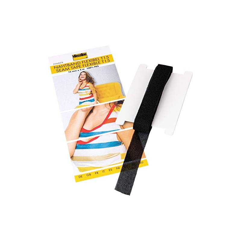 Vlieseline Flexible Seam Tape T15 SB, 100% Polyester, Black, 15 mm x 5 m