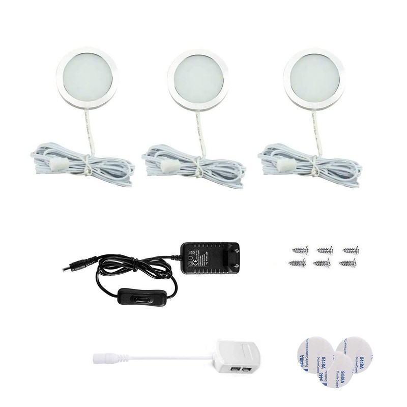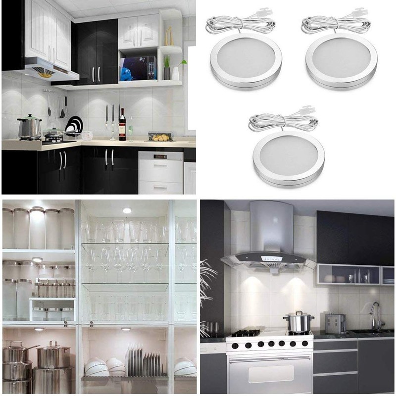 Vlio Vlio LED Unterbauleuchten 3er Set, LED Schrankleuchten, Vitrinenbeleuchtung Kaltwei?, 7.5W 750LM LED Kchenlampen, DC 12V LED Puck Lichter fr Kabinett Schr?nke Weinschrank Kleiderschrank