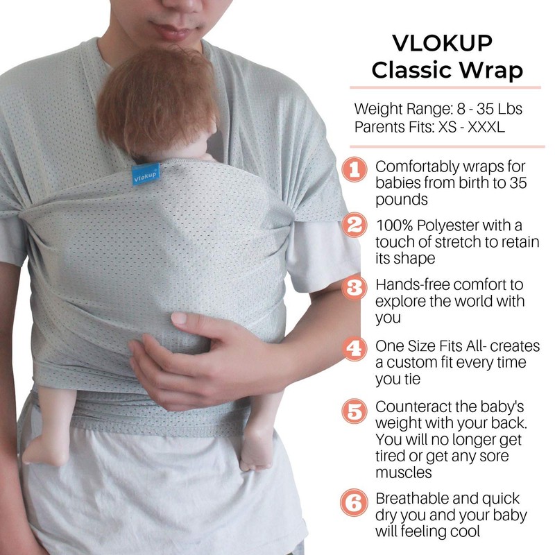 - One Size Fits All - The Vlokup baby carrier is 5 meters long, 0.5 meters wide, meaning it can provide excellent support for your baby's head, neck, back and gives a pleasant ride for the baby