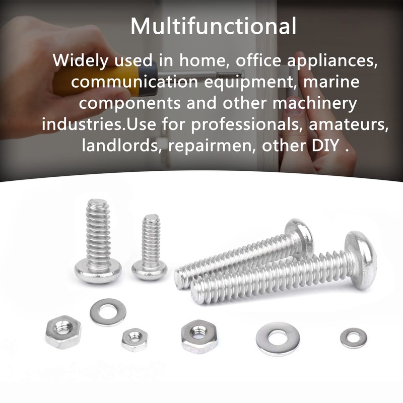 - ☘️【Great for Daily Use】These stainless steel screws can be widely used in all kinds of precision machinery, classified instruments, instruments, electronic products, household appliances, communication products, locks, lamps, lights, toys, etc. This hardware nuts, screws & bolts kits are widely used in household. The machine screw assortment kit is also a perfect gift for DIYer.