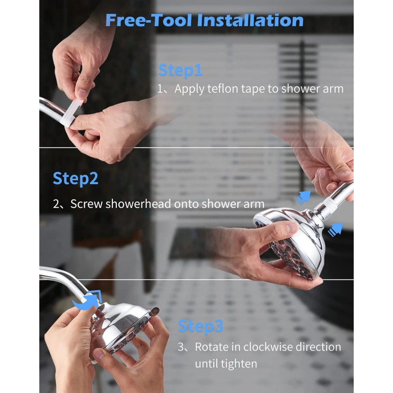 ·Because of the leak-proof rubber ring, you do not need to use tools to screw the shower very tightly during the installation process, you only need to install it with bare hands. In most cases, Teflon tape is not even needed, but our kit still contains a few meters of Teflon tape. You can choose whether to use it according to your needs.