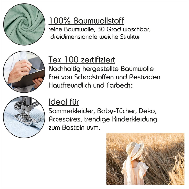 - The trendy fabric: our muslin is ideal for scarves, baby clothes and much more. DIY fabric for sewing patterns and fabric cuts.