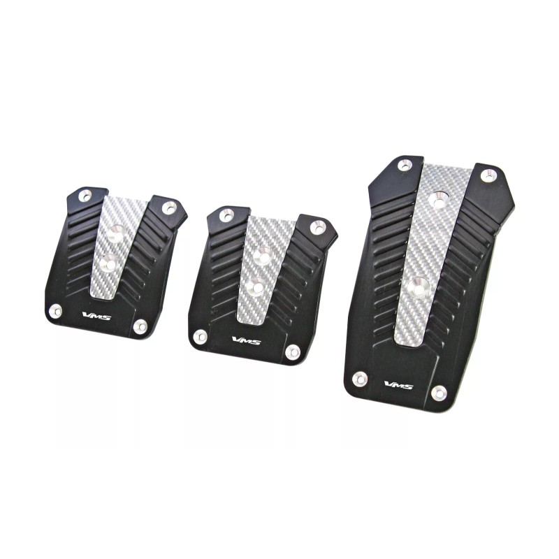 VMS BLACK SILVER CARBON FIBER ALUMINUM PEDAL PAD COVER MANUAL TRANSMISSION MT