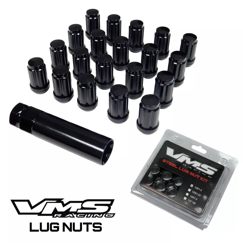 BRAND NEW Set of 20 VMS Racing BLACK SPLINE CLOSED END FORGED STEEL lug nuts for use with VMS wheels and most wheels with cone type seats . These are the perfect lug nuts for a street or street/strip car. These are available in both chrome or black. These lug nuts are manufactured of forged steel and are thus are extremely strong and durable.