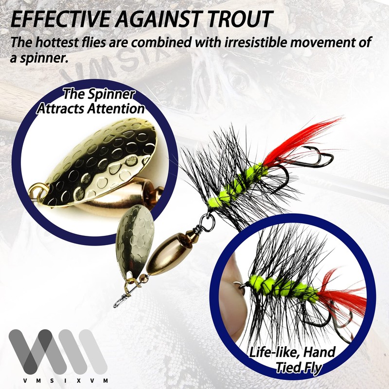 - 【Try Them Right Now】In short, if you want to take your fishing game to a new level, you need the VMSIXVM deadly spinner-fly combo. These micro fishing lures are easy to use, versatile and very effective at enticing, hooking, and landing a variety of fish. Try them today and see the results for yourself!
