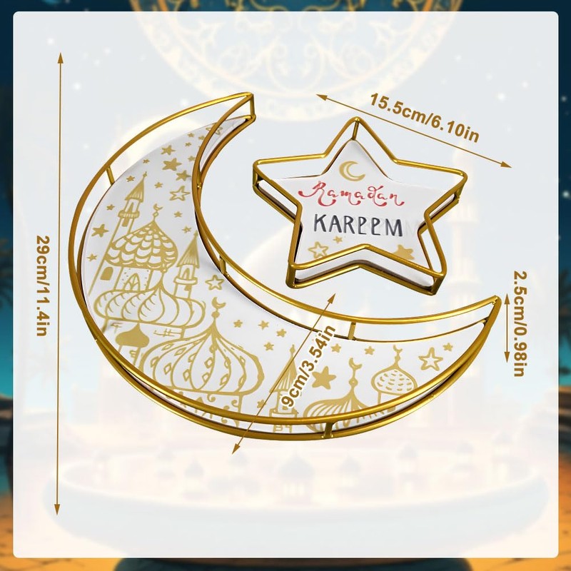 - Eid Mubarak Moon and Star Tray:The package includes 2 pieces of Ramadan serving trays in gold color, including 1 moon tray and 1 star serving plate. With our moon and star trays, you can celebrate Eid Mubarak in style to be creative and intense festival atmosphere