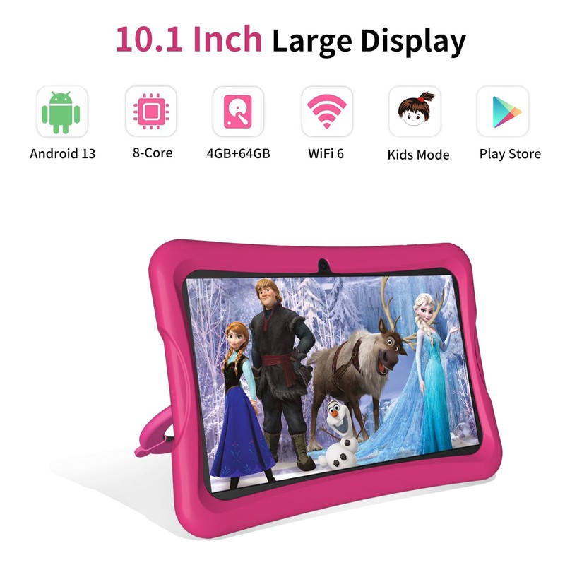 - ANDROID 13 OS丨64 GB Storage : This kids tablet runs on Android 13 with an 8-core processor, 4GB RAM, and 64GB storage, ensuring fast app launches and smooth animations. With expandable storage up to 1TB (Micro SD card not included). Easily access Google Play and Google Kids Space for apps like YouTube, ABCmouse, and Disney+.