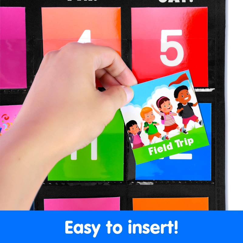 VNOM Black Calendar Pocket Chart for Classroom,School Pocket Calendar for Kids Learning for Home,Pre-k Homeschool Daycare Classroom Supplies for Teachers
