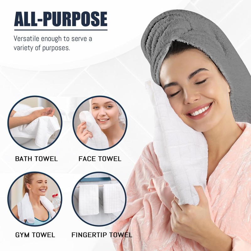 - ULTRA SOFT & SKIN FRIENDLY WASHCLOTHS - High capacity, economical 8 Pack, Size 15" x 25", these white bath hand towels allow plenty of space to dry off fast and easily and won't leave any lint left behind. Each towel feels luxuriously soft.