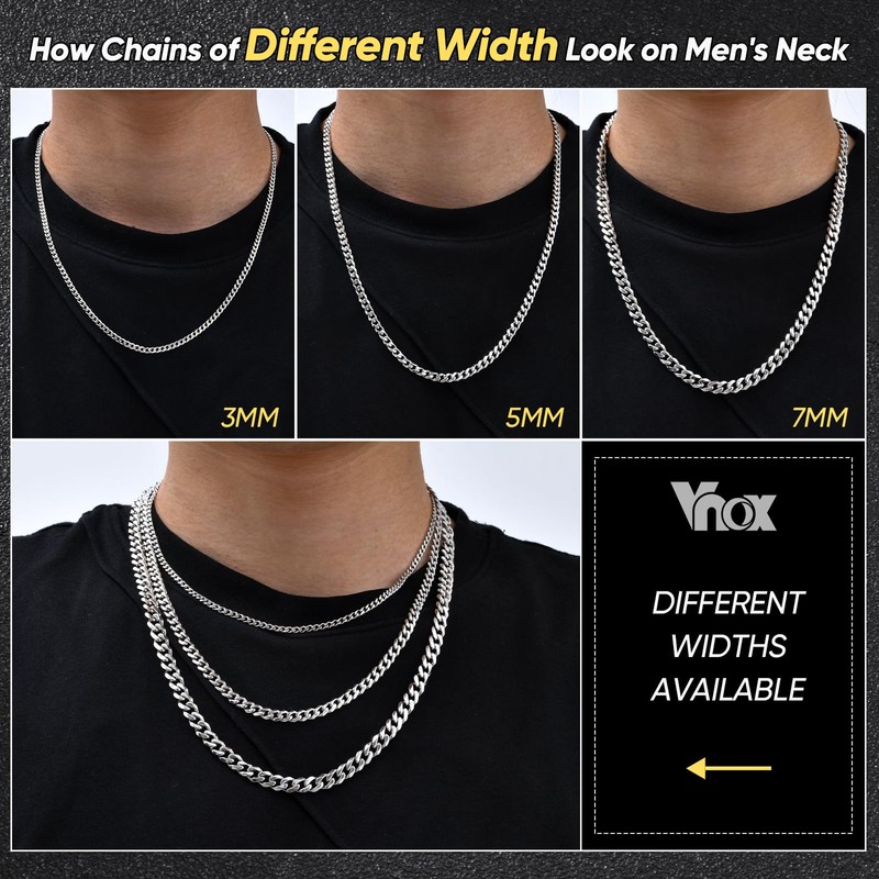 - 【Size of Men's Silver Chains】Our stainless steel chain come in various sizes,ranging from 18 inches/20 inches/22 inches/22 inches/24 inches,with a width of 3.6 millimeters/5 millimeters/7 millimeters to choose from. You can choose the perfect size that suits your personal style and preferences.Silver necklace for men is perfect for daily,sports,and outdoor wear and are a must-have for fashionable men and women.