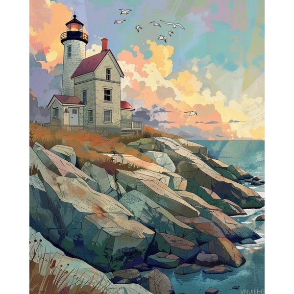 VNUIEHG Lighthouse Paint by Numbers Kit for Adults, Landscape Paint by Number on Canvas, Scenery Digital Oil Painting Kits Suitable for Home Wall Decoration Gift 16"x20"
