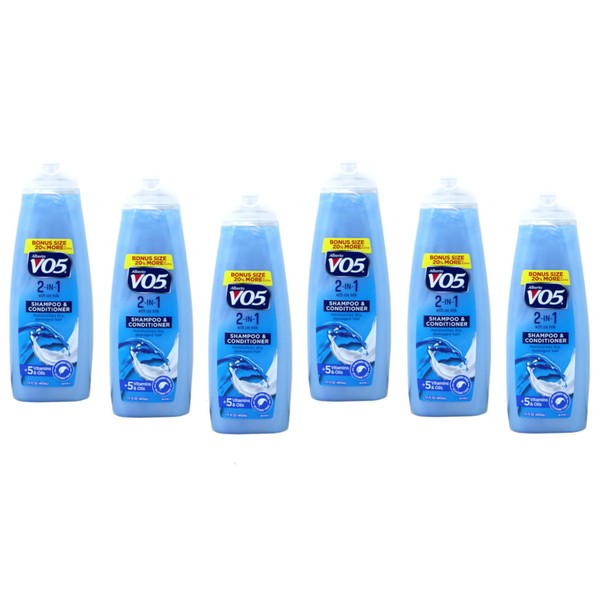 Alberto VO5 2 in 1 Moisturizing Shampoo/Conditioner, Softens and Shines, 6 Pack of 12.5 Oz Bottles