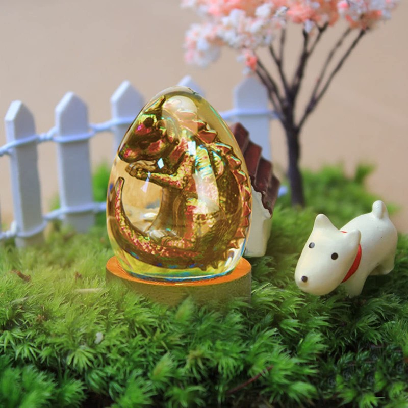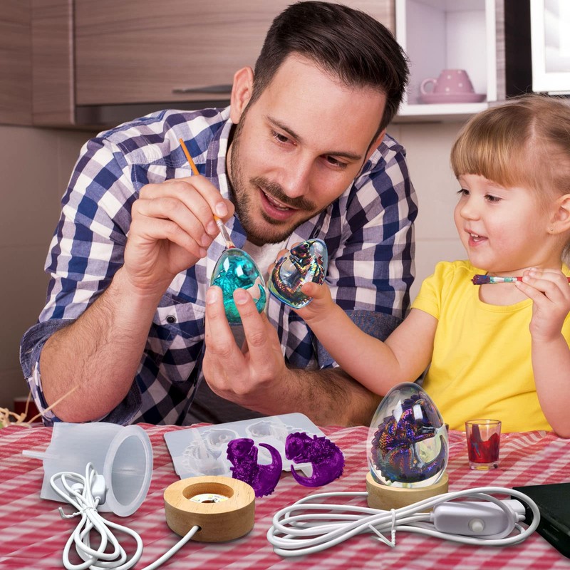 - 【4 PACK MOLD KIT】: You will receive 1pcs egg shaped mold(2.4in*3.03in),1pcs baby dragon mold (3.97in*2.71in) and 2Pcs USB powered wooden lighted base stands(2.36in*0.79in).A perfect combination set in novel style,which helps you create your own unique and delicate 3d dragon egg crafts projects