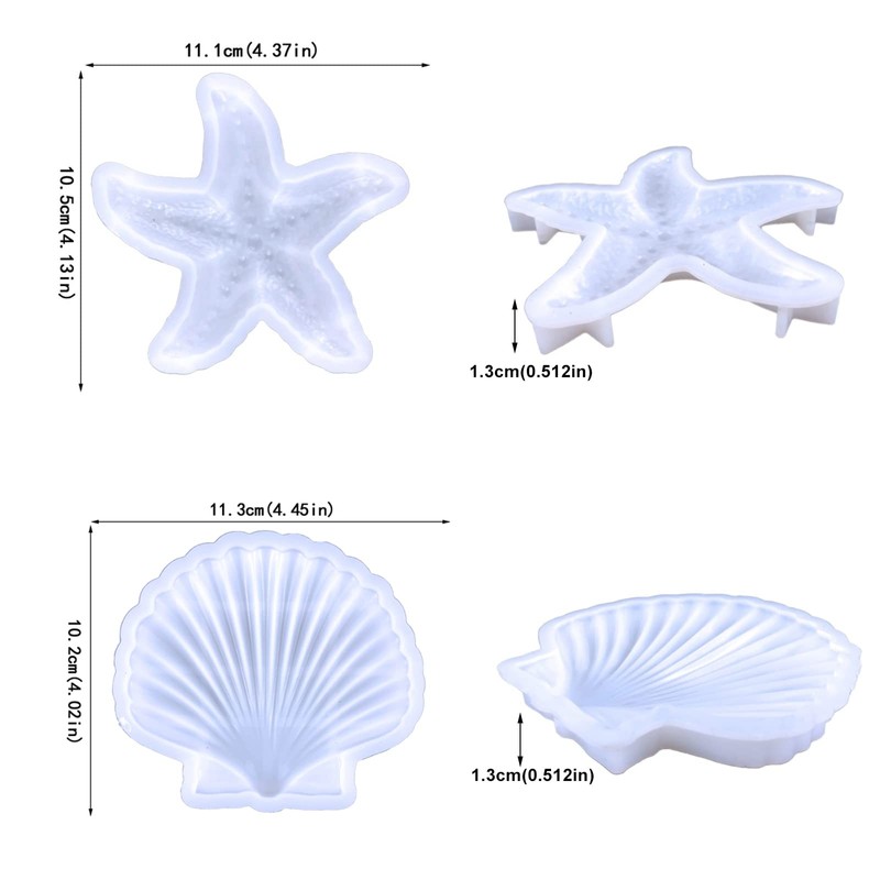 • 【Lifelike Starfish Seashell Resin Molds】: You will receive 1pcs seashell silicone mold with 4.45*4.02*0.51inch and 1pcs starfish silicone mold with 4.37*4.13*0.51inch, which needs in total about 2.96 ounces of resin.Each one has unique shapes, great to be used as DIY crafts and decor