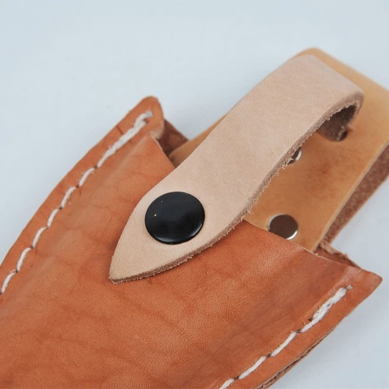 Leather strap with snap closure can ensure place the tools steady. Leather strap with snap closure, just undo your belt and thread it through the leather loop.
