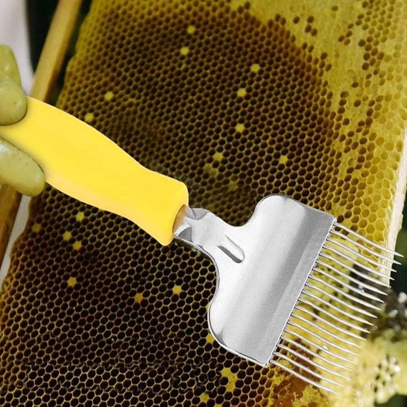 This fork can help you remove cells for inspection and scrape off excess lids before scraping honey.