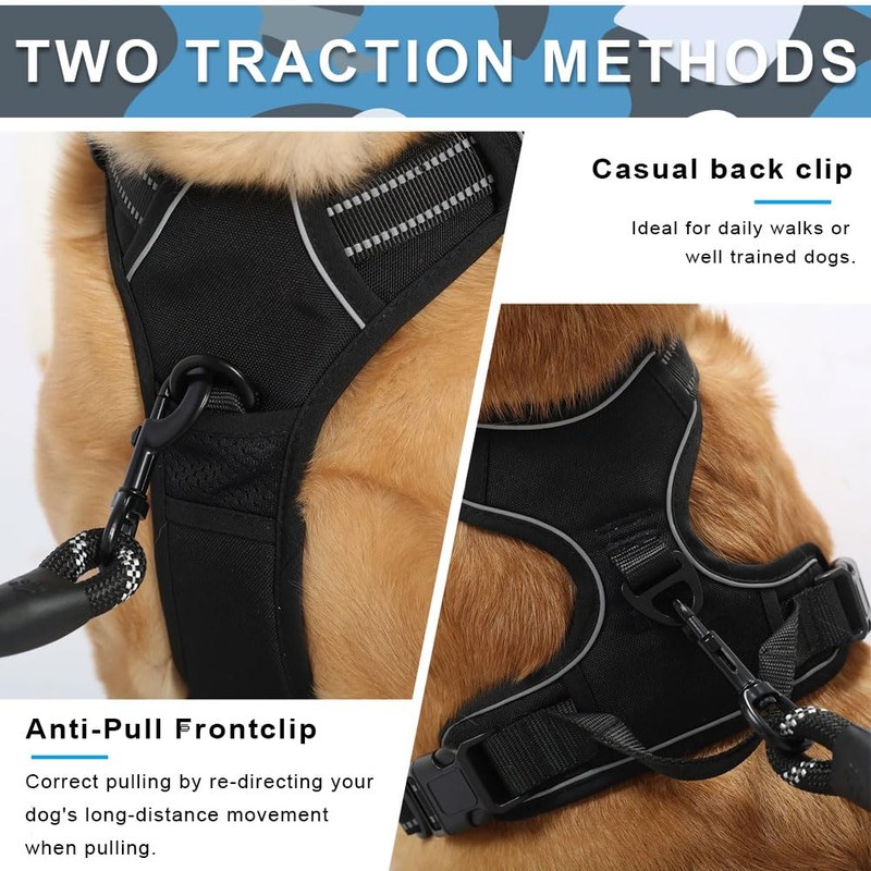 Dog Harness is designed to bring the ultimate ease and comfort to your furry companion’s daily outings. Enjoy stress-free walks as you experience unparalleled control without any risk of pulling or choking.