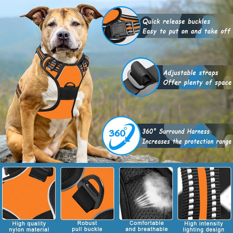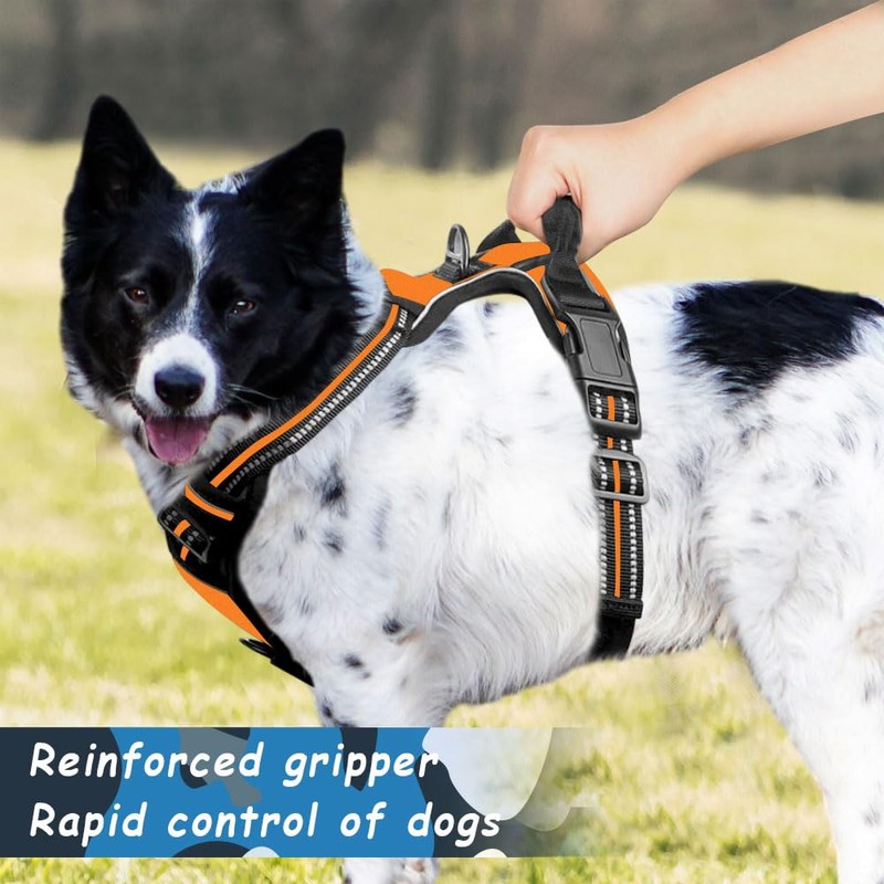 Voarge Dog Harness Large Dog No Pull Pet Harness with 2 Leash Clips, Reflective Strips, No-Choke with Easy Control Handle for Training or Walking, Medium Large Dog Vest Harness (Orange, M)