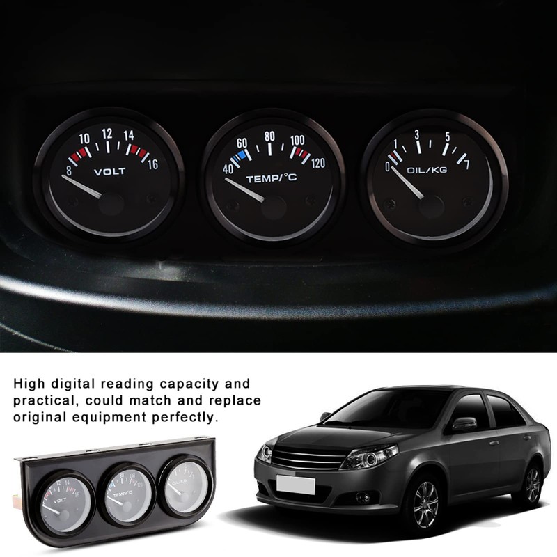 3-in-1 design, including voltmeter, water temperature gauge and oil pressure gauge.