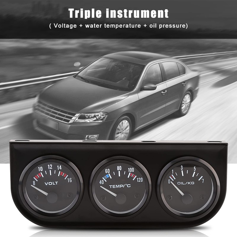 - MULTIFUNCTIONAL DISPLAY The triple gauge design combines a voltmeter, water temperature gauge and oil pressure gauge into one convenient unit, allowing for efficient monitoring of your vehicle's important functions
