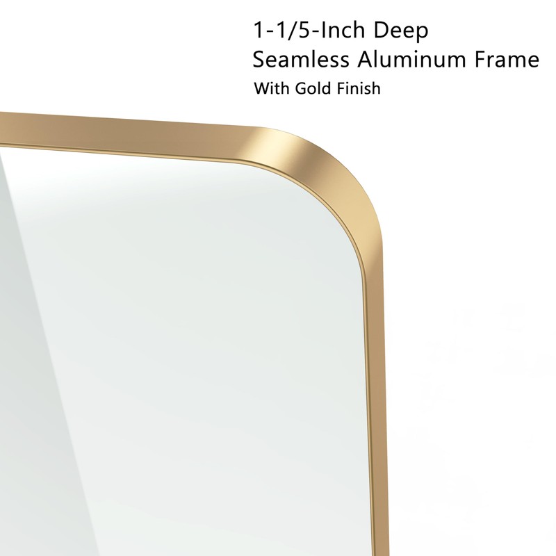 VocalStar 18 x 26 Inch Gold Bathroom Mirror for Wall, Metal Framed Rounded Rectangle Vanity Mirror, 1/4-inch Shatterproof Glass | Ultra-Flush Hanging