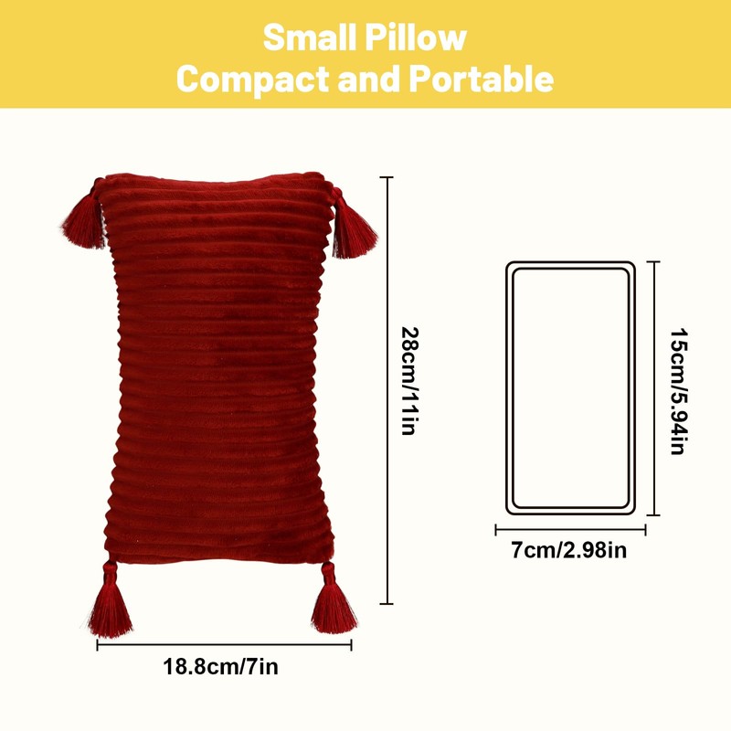 vocheer Small Travel Pillow with Tassels, 11"x7" Neck Pillow for Sleeping, Mini Travel Pillow, Tiny Pillows for Neck, Wrist, Lumbar and Knee, Pets Pillow, Plush Pillow, Machine Washable, Red-2pc