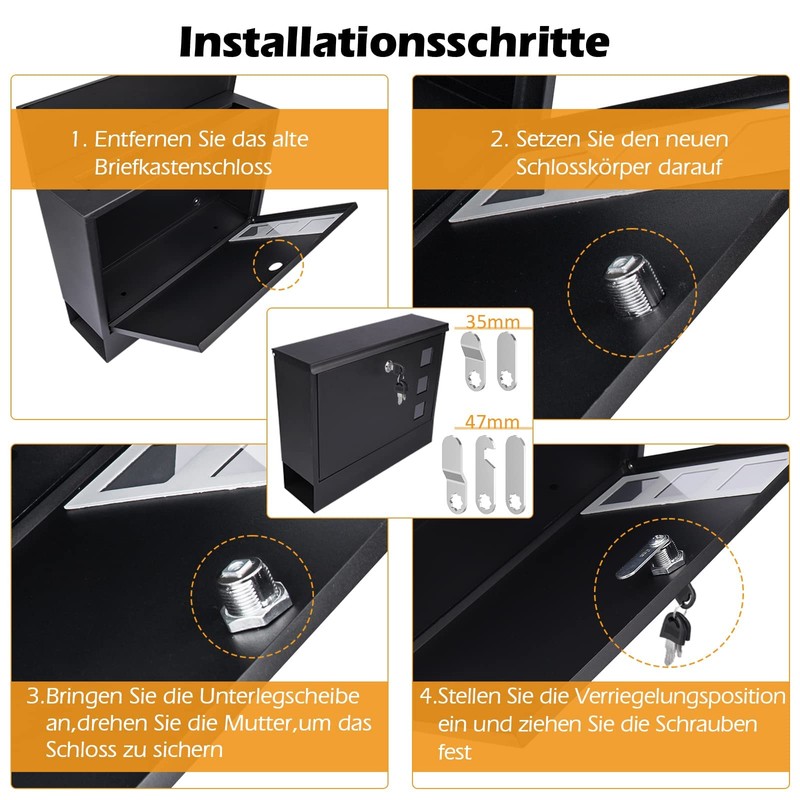 VOCIBO® Letterbox Lock, 4 Keys, Comes with 5 Different Lock Plates, Letter Box Lock 16 mm, Locker Lock, Diameter 18 mm, Drawer Lock, Lever Lock for Letterboxes, Cabinet Doors