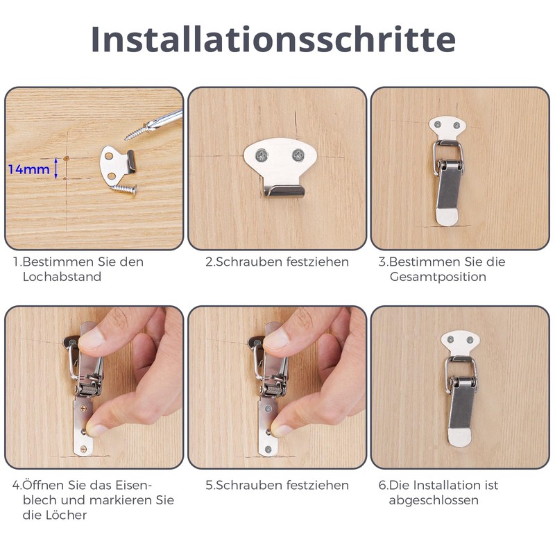 VOCIBO® Tension Clasp, Stainless Steel 4 Pieces, 45.5 mm with Screws, 16 Pieces, Lever Lock, Box Closure, Cap Lock for Toolbox, Drawer, Chest, Case, Box, Cabinet