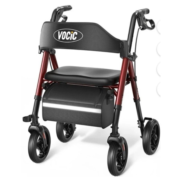 VOCIC Foldable Rollator Walker Seniors Padded Seat Backrest 8" Wheel - 330lbs