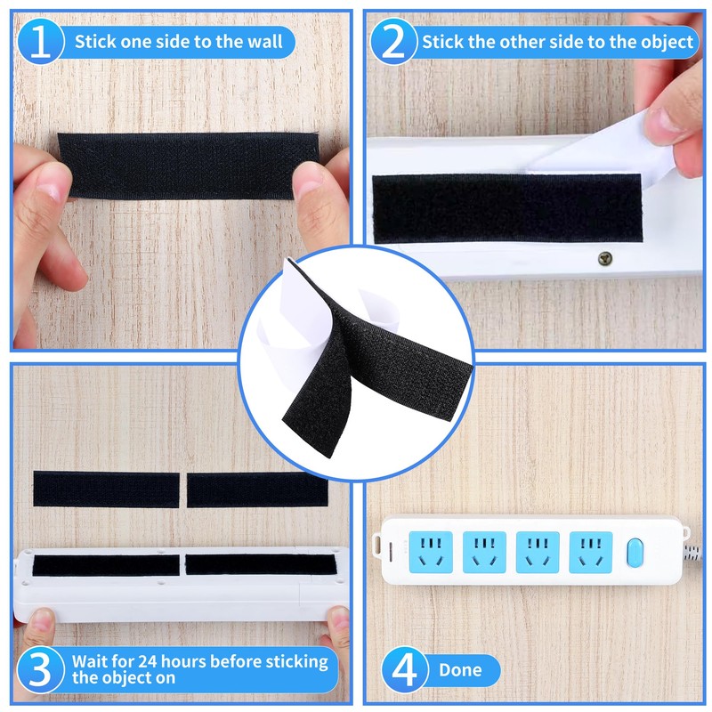 - EASY to USE - Before use, Please clean the surface of dust or grime, remove liner from hook or loop strips and stick on, This self-adhesive tape can be applied to any smooth surface, such as wood flooring, tile, plastic, glass, etc.