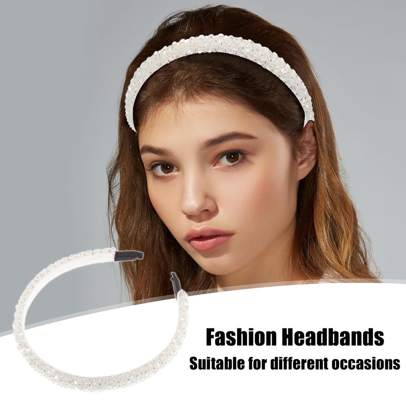 VOCOSTE 1pc, Faux Crystal Headband, Women Hairband, White, 0.59 Inch Wide