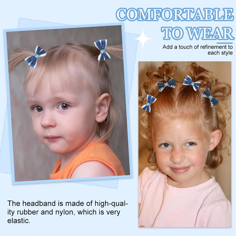 VODAFQS Set of 10 Hair Bows, Colourful Elastic Hair Bobbles, Baby Hair Bobbles, Hair Bobbles with Bow, Metal-Free, Hair Bobbles for Ponytail, Hair Accessories for Little Girls, Children (Blue)