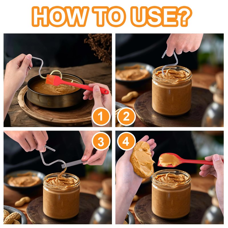 - One Set Multipurpose, Must Have In Kitchen: In addition to being used for peanut butter, this mixing set is also suitable for a variety of sticky foods, such as jam, avocado puree, honey, etc, fully meet the daily kitchen needs. The addition of a spatula and an oil brush makes it possible to go from mixing to spreading in one go, whether it's toast for breakfast or a snack for afternoon tea, making food preparation easier and more efficient.