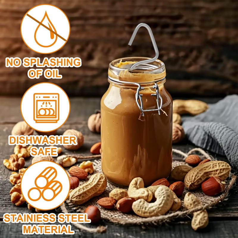 - Solve Peanut Butter Hardening Challenges: Are you still worried about peanut butter hardening during storage? Our this peanut butter blender set is designed with a unique crank handle to maximize the blending area inside the jar, with just a few simple rotations, it easily breaks up the top layer of peanut butter clumps and makes it smooth and easy to spread again, which ensures fast and even blending every time, saving your time and energy.
