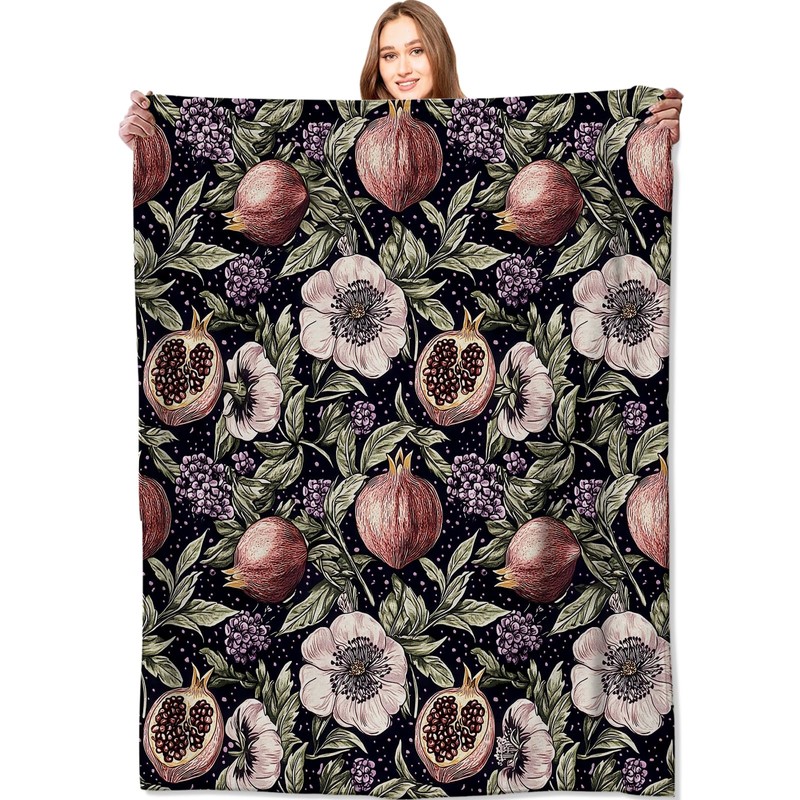 VODRM Pomegranate Blanket Mystical Fruit Botanical Throw Blankets,Gifts for Kids Woman Adult,Lightweight Soft Fleece,Lush Blossom Foliage Dark Art, for Sofa Couch Bed Room Modern Decor 40x50in