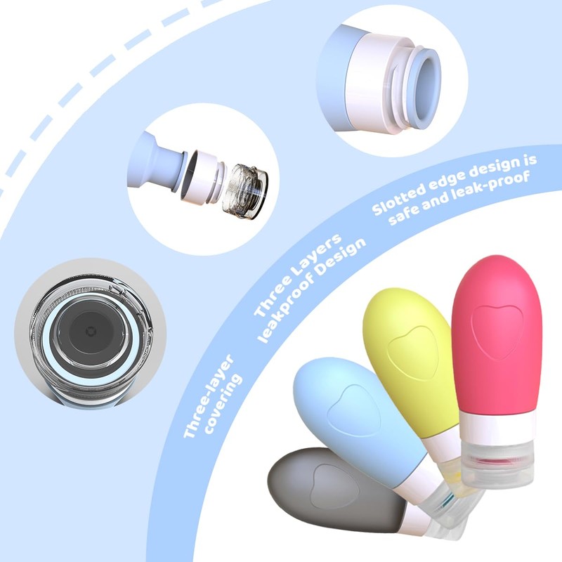 - 🥇【Tsa Approved Leak Proof Travel Bottles】The silicone bottles are designed with 3-layer leak-proof with a sturdy flip-top lid and a drip-free valve to protect your bottle from spills, leaks or drips during transport.Prevent your expensive cosmetics from leaking during travel, with our unique leak-proof design.
