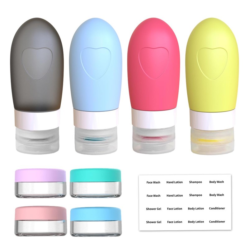 vodvob Travel Bottles for Toiletries, Tsa Approved Silicone Containers for Toiletries, Leak Proof Refillable Liquid 3oz 2oz Travel essentials for Shampoo Conditioner Lotion BPA Free (Style 3)
