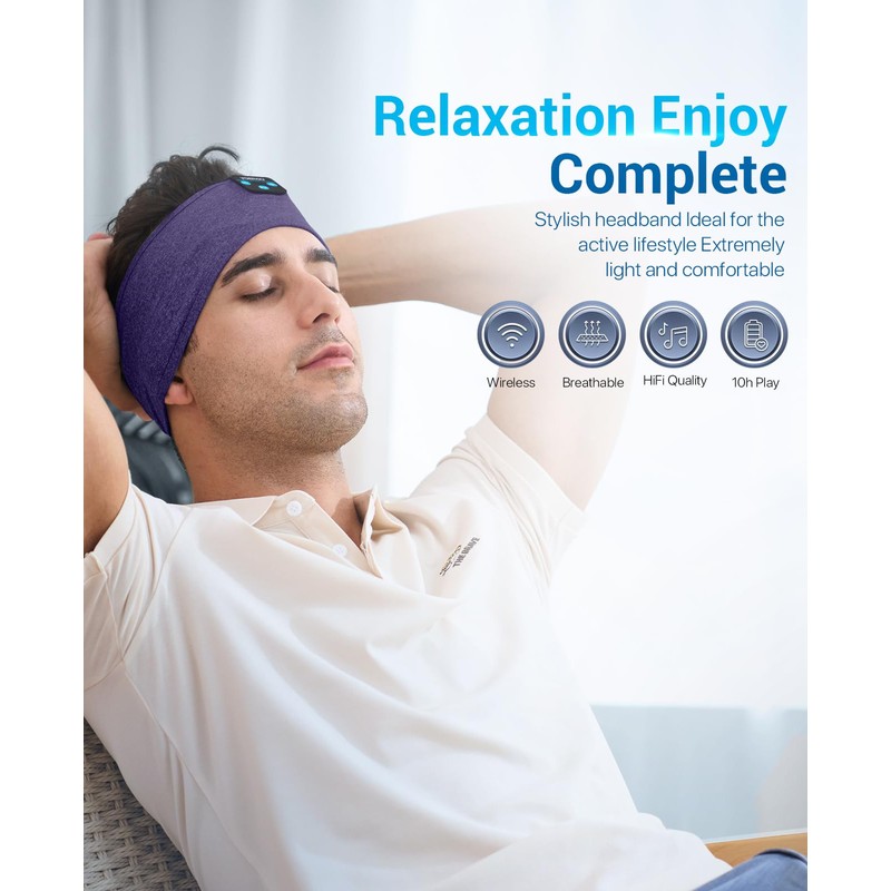 - [Vielseitiges 3-in-1-Design] Genießen Sie den Komfort eines 3-in-1-Schlafkopfhörers, Sport-Bluetooth-Stirnbands und einer Schlafmaske, mit der Sie nicht nur kabellos Musik hören können, sondern auch Ihre Haare an Ort und Stelle halten und bei intensiven Trainingseinheiten Schweiß absorbieren . Das eingebaute ultradünne Mikrofon sorgt dafür, dass Sie keinen wichtigen Anruf verpassen, sodass dieser Kopfbügelkopfhörer sowohl für die Freizeit als auch für einen aktiven Lebensstil geeignet ist.