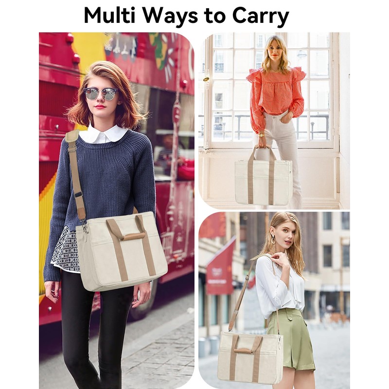 - 【Upgraded Canvas Tote】Our interior dividers are sewn to the bottom of the bag, so you don't worry about items sliding around at the bottom. The work tote is made of premium canvas with smooth zipper and thickened hardware. It combines softness, comfort, and durability for long-term use.
