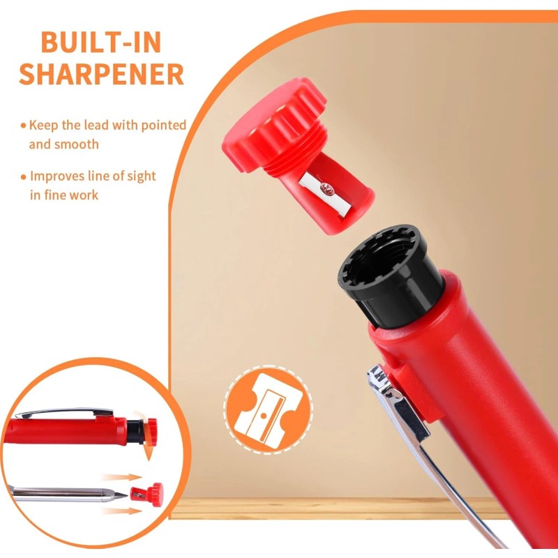 - [Sharpener and Eraser]: Each carpenter pencil features a built-in sharpener, conveniently screwed into the top of the pencil to prevent loss and ensuring sharp lead and smooth for precise lines. Paired with a eraser for easy error correction.