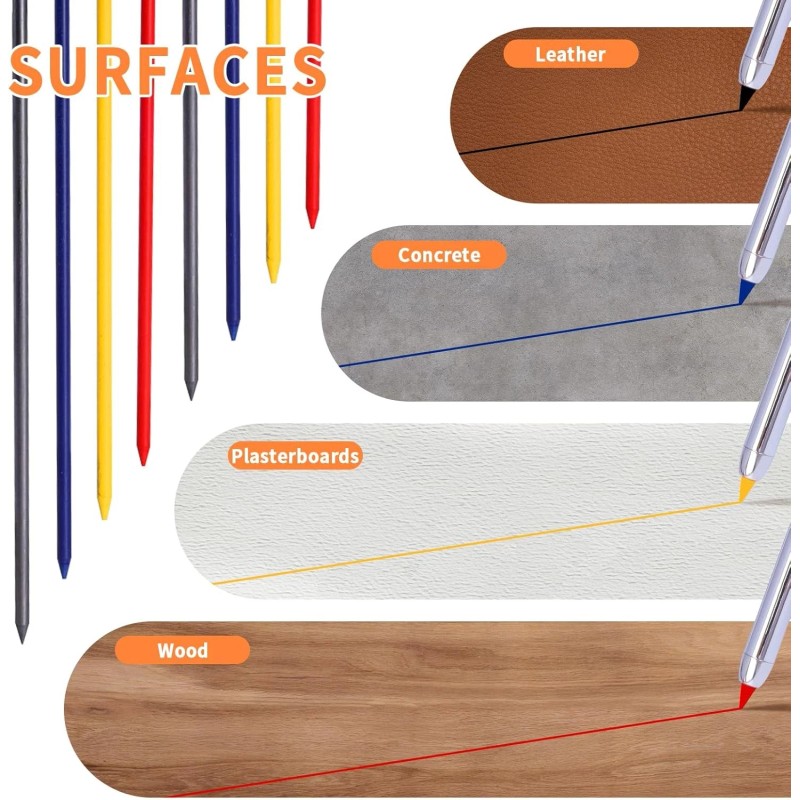 - [Various material markings]: 4 colors solid construction pencil can marks on various surfaces,such as metal, plastic, wood, paper etc. Ideals for woodworkers, contractors, craftsmen, builders, merchants and masons