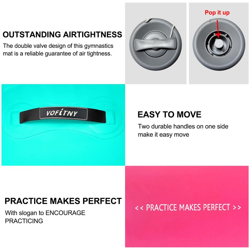 - 〖All Purpose〗This inflatable track mat can be easily set up in living room, backyards, in gym, school, studio, club, pool. It can be used for gymnastics, cheer training, tumbling, flipping, free stunting, ballet, yoga, taekwondo, entertainment, water fun, and more.