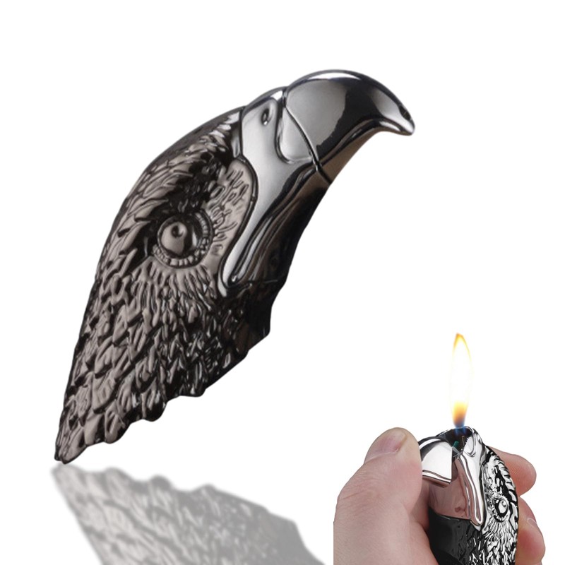 - [Creative Lighter] This is a cool lighter with an eagle head shape, unique charm, very eye-catching and domineering, giving people a different feeling. The hawk-beak ignition, light flame, windproof torch can burn most objects. Making it perfect for outdoor activities such as camping, hiking or BBQ parties.