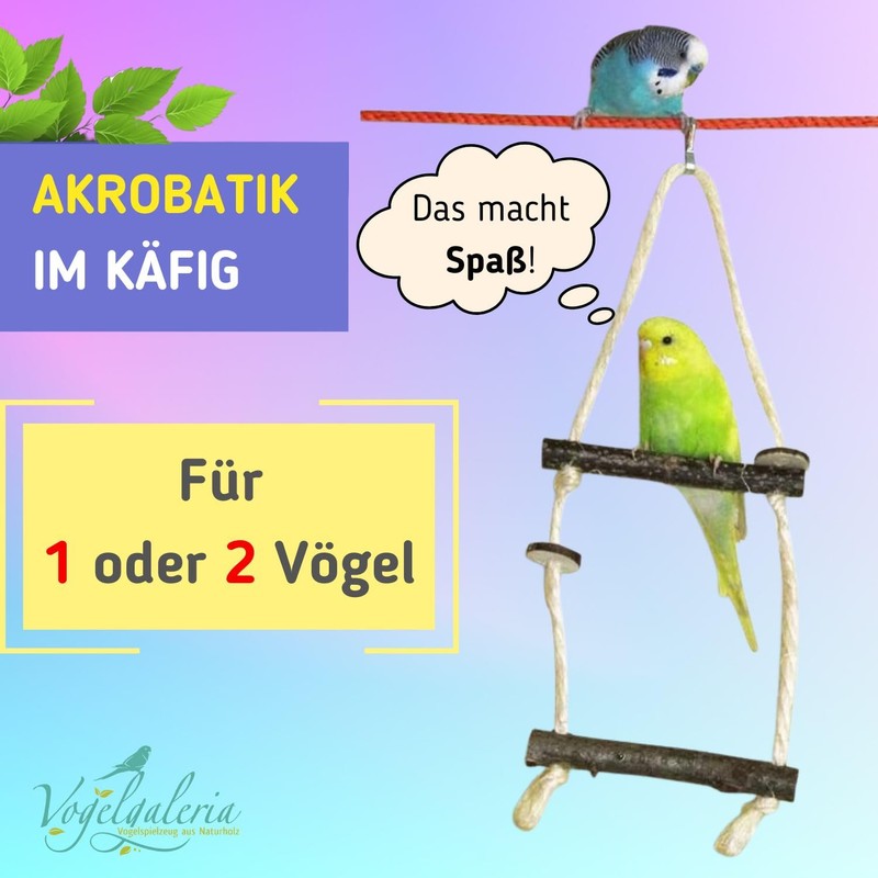 Vogelgaleria Budgies Swing Natural Wood for Two Birds. Handmade Bird Toy by Professionals