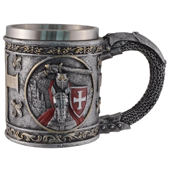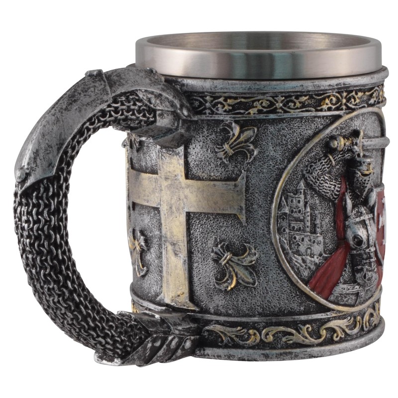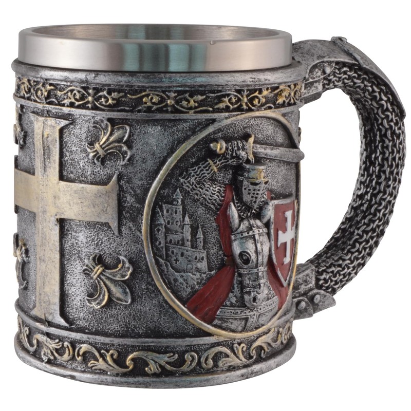 The 5 Crusades took place between the years 1095 and 1279 and were military expeditions of the Occident whose goals were the reconquest of Jerusalem and the "Holy Land". The sword and dagger were vital companions for every crusader on this long and dangerous journey with numerous skirmishes and raids. Arrived in the "Holy Land", the crusaders often had to prevail against an overpowerful Islamic army. Famous army leaders of these crusades were Saladin on the side of the Turks and the German Emperor Barbarossa, as well as Richard the Lionheart, who was fatally hit by a crossbow arrow during the Third Crusade. This pitcher is reminiscent of the famous time of the Crusades when the Crusaders wanted to liberate the holy land and engaged in bloody battles with the "unbeliever" Arabs. Made of artificial stone and painted by an artist.
