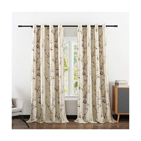 VOGOL Blackout Curtains Magnolia Design Pattern, Living Room Dining Bedroom Classic Window Curtains, Room Darkening Thermal Insulated Drapes Grommet Top, 2 Panels 52" Wx96 L