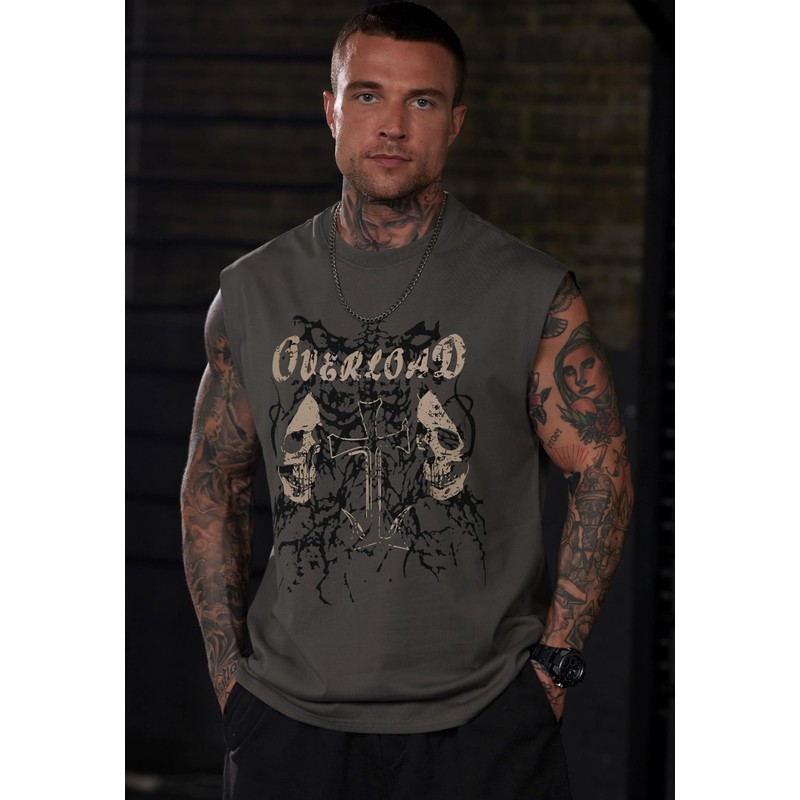 VOGSTART Men's Tank Top Designer Athletic Shirts Cozy New Muscle Graphic Sleeveless Novelty Cut Off Comfy Solid Soft Casual Gym Sport Training Crewneck Tee Dark Grey Skeleton XL